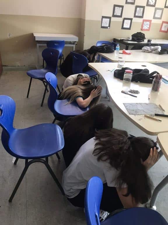 Tüm sınıflarımız 59 saniyede okul bahçesinde toplandı.